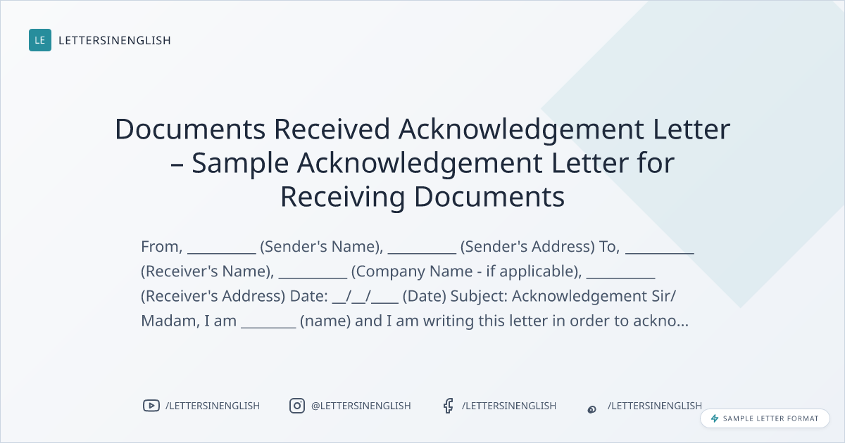 Documents Received Acknowledgement Letter – Sample Acknowledgement Letter for Receiving Documents