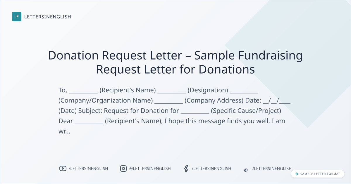 Donation Request Letter – Sample Fundraising Request Letter for Donations