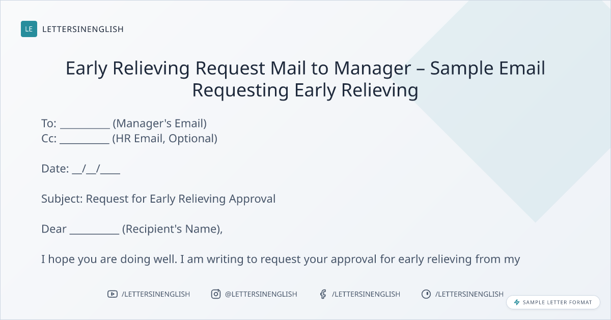 Early Relieving Request Mail to Manager – Sample Email Requesting Early Relieving