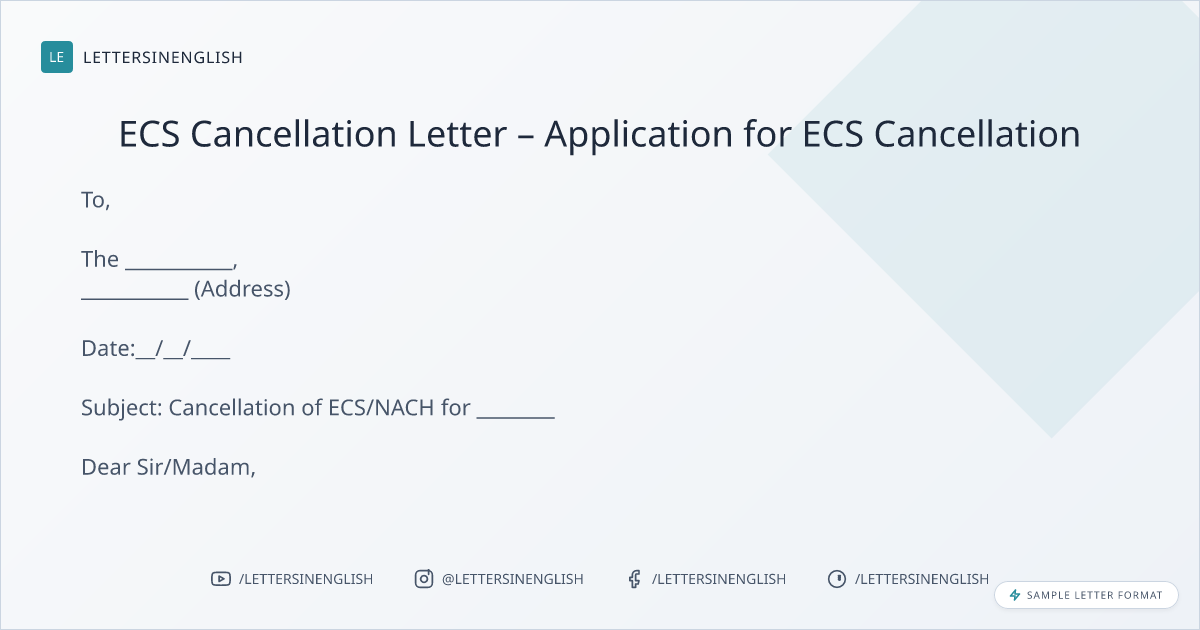 Sample Cancellation of ECS - ECS Cancellation Letter Sample