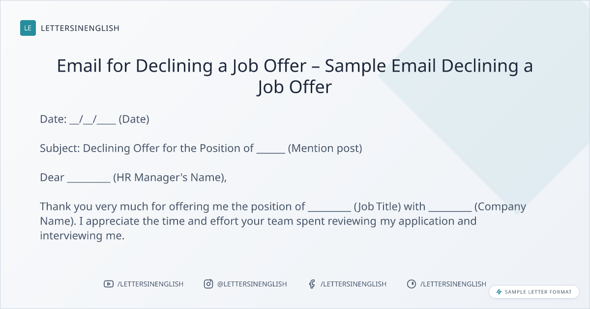 Email for Declining a Job Offer – Sample Email Declining a Job Offer