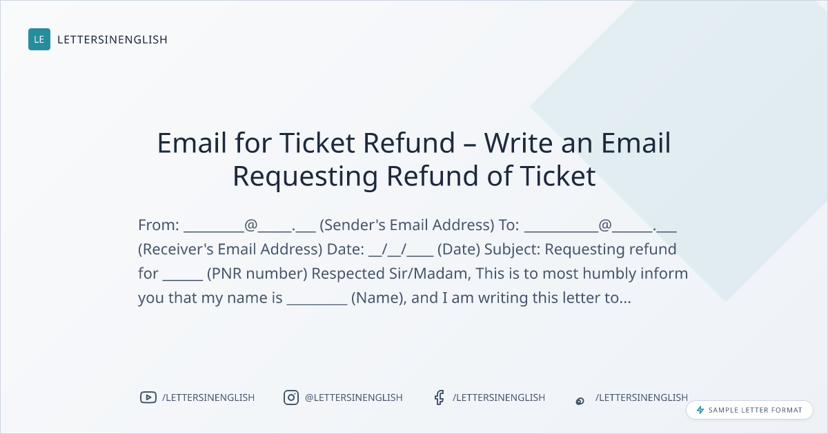 Email for Ticket Refund – Write an Email Requesting Refund of Ticket
