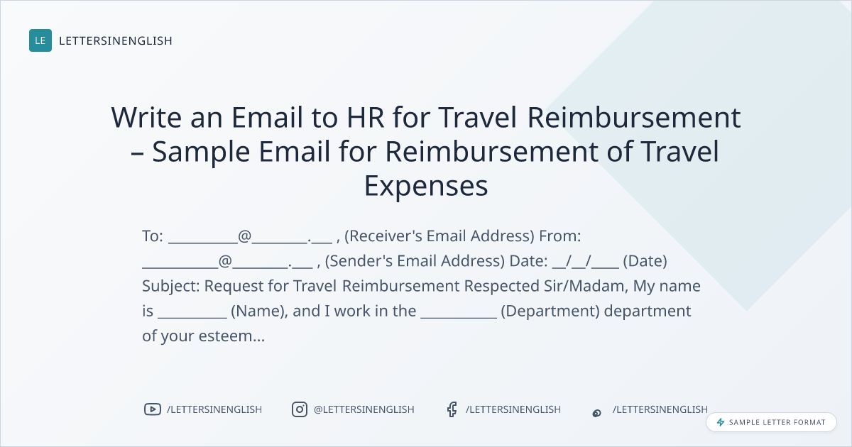 Write an Email to HR for Travel Reimbursement – Sample Email for Reimbursement of Travel Expenses