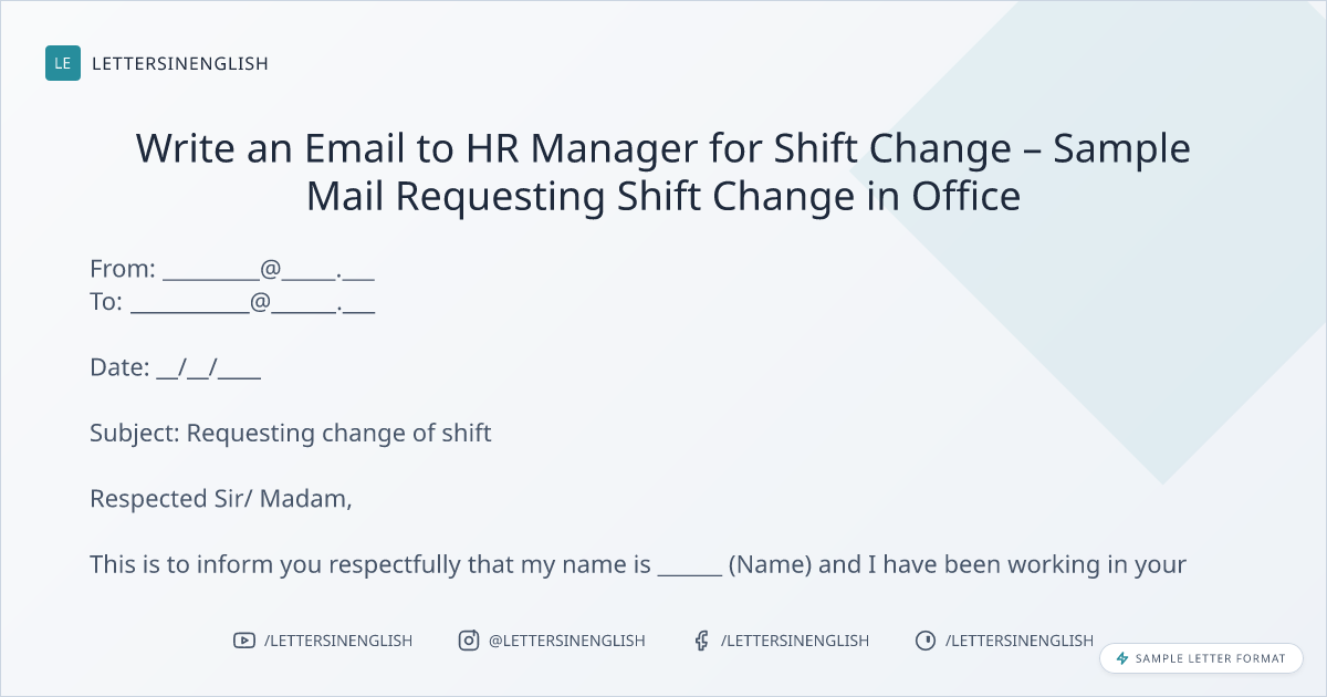 Write an Email to HR Manager for Shift Change – Sample Mail Requesting Shift Change in Office