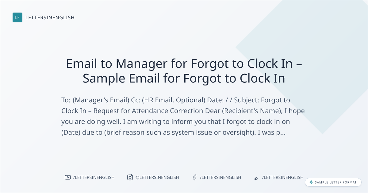Forgot to Clock In Email to Manager – Sample Email for Attendance Correction