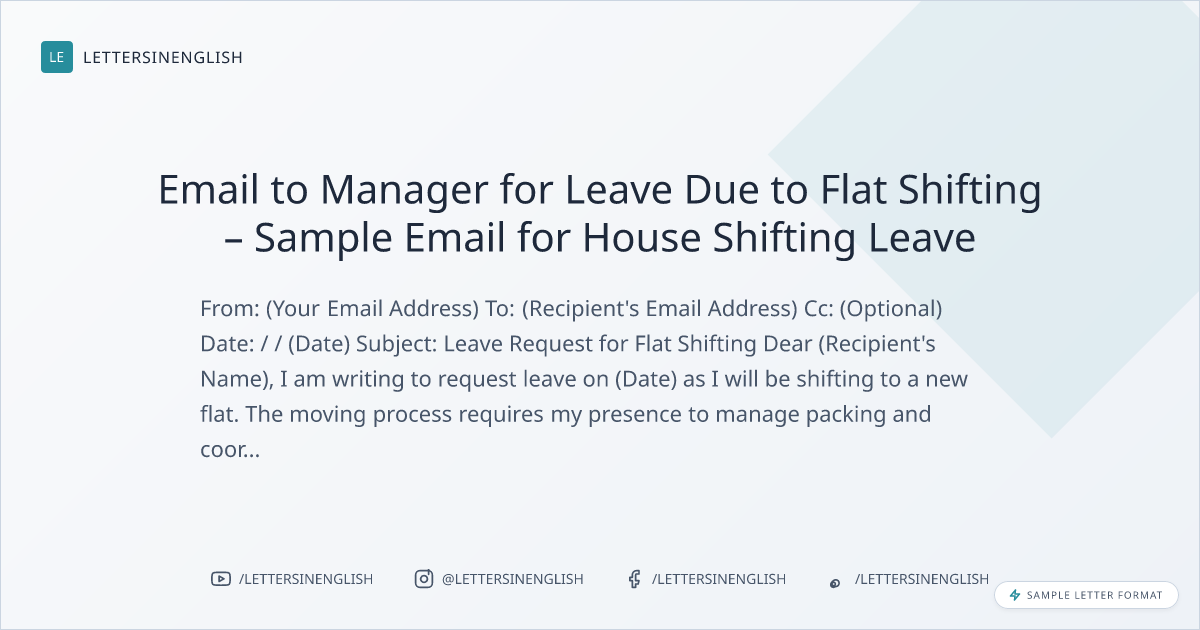Email to Manager for Leave Due to Flat Shifting – Sample Email Requesting Leave for House Shifting