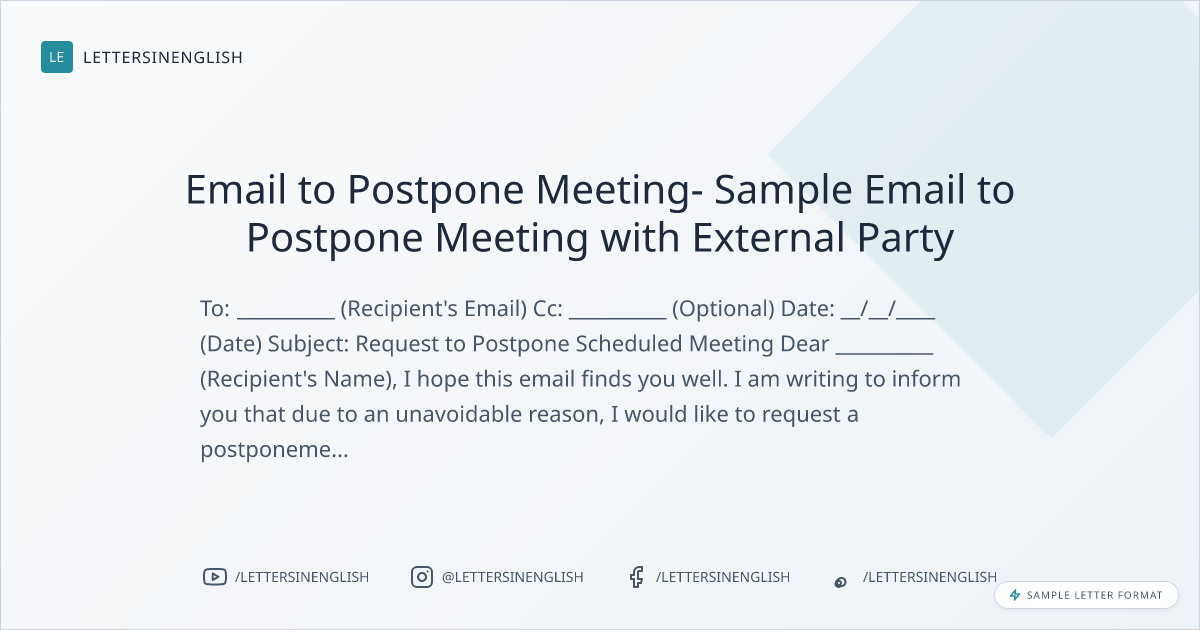Email to Reschedule Meeting – Sample Email to Postpone Meeting with External Party