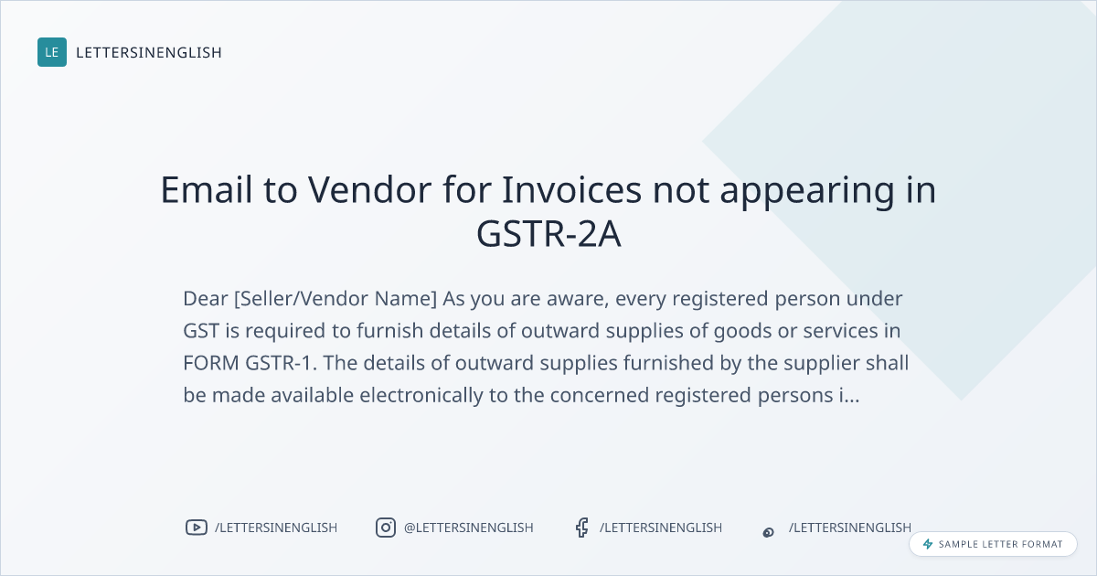 Email to Vendor for Invoices not appearing in GSTR-2A
