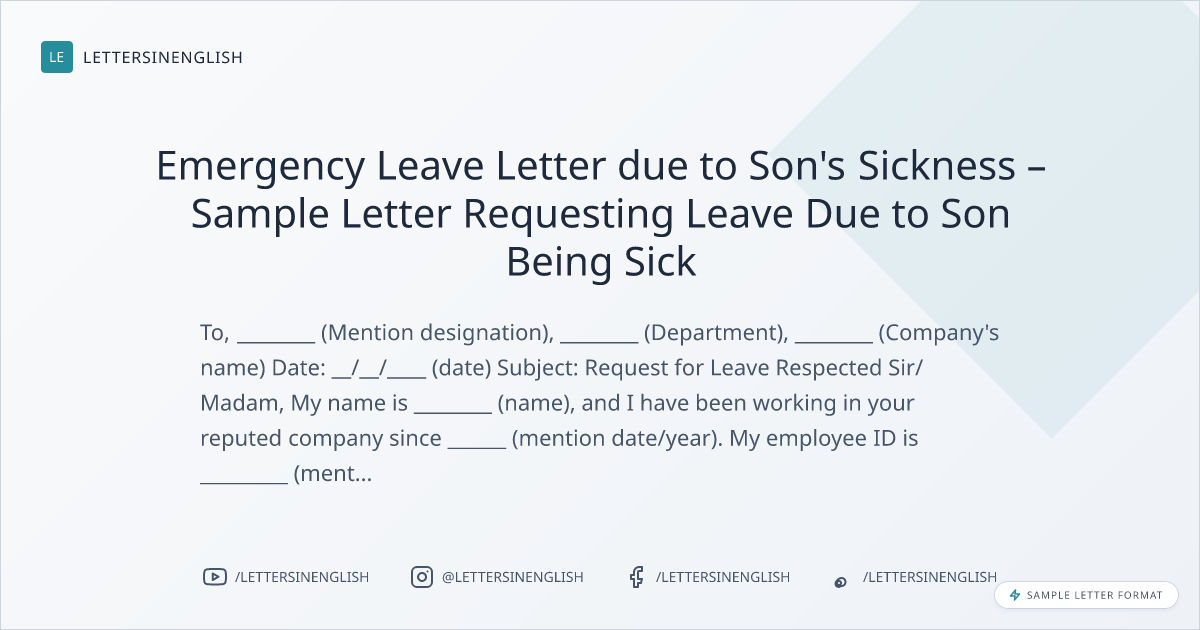 Emergency Leave Letter due to Son’s Sickness – Sample Letter Requesting Leave Due to Son Being Sick