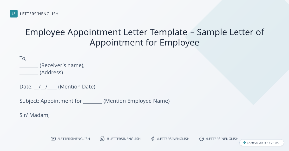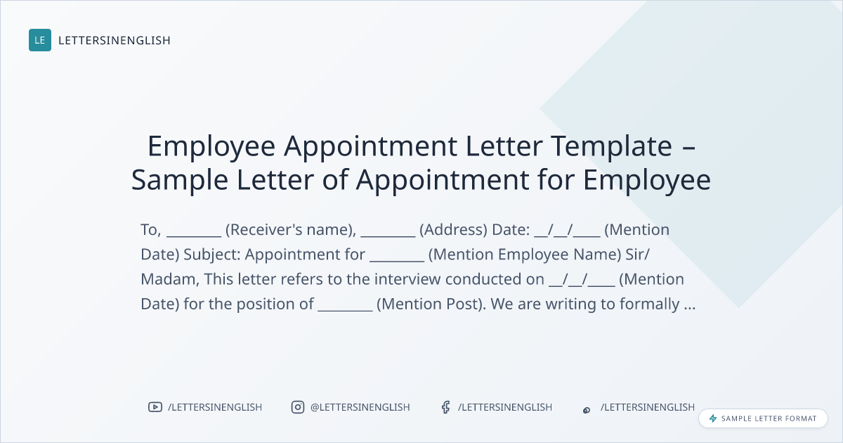 Employee Appointment Letter Template – Sample Letter of Appointment for Employee