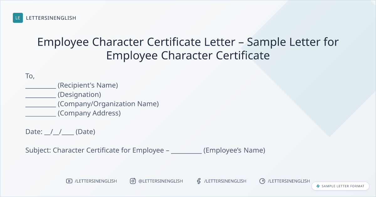 Employee Character Certificate Letter – Sample Letter for Employee Character Certificate