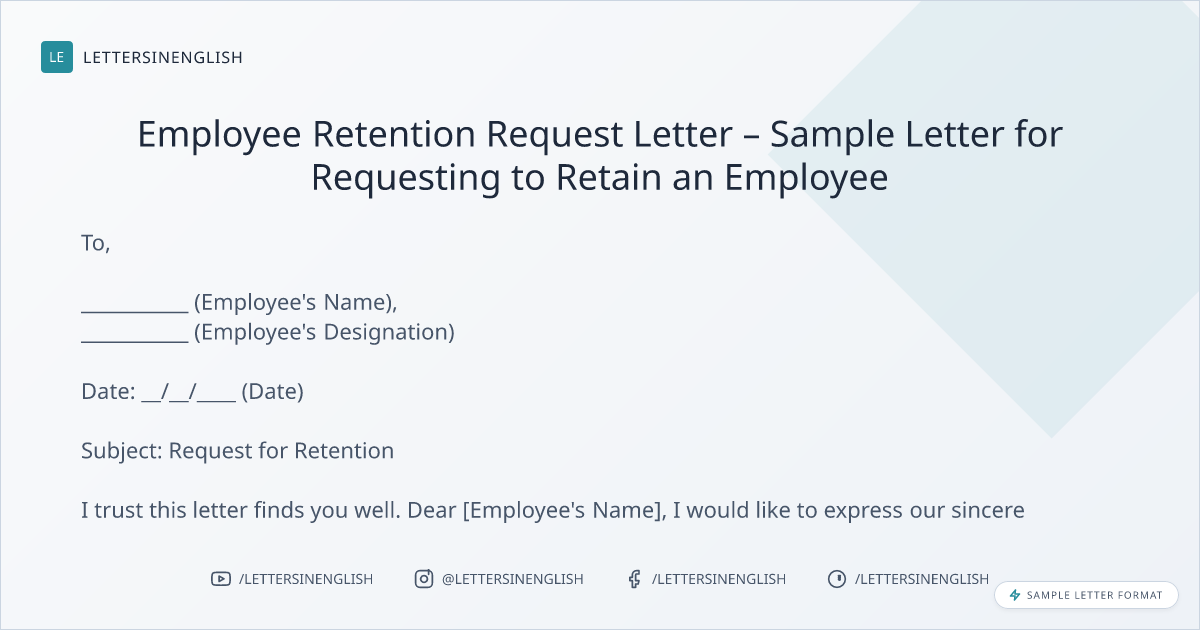 Employee Retention Request Letter – Sample Letter for Requesting to Retain an Employee