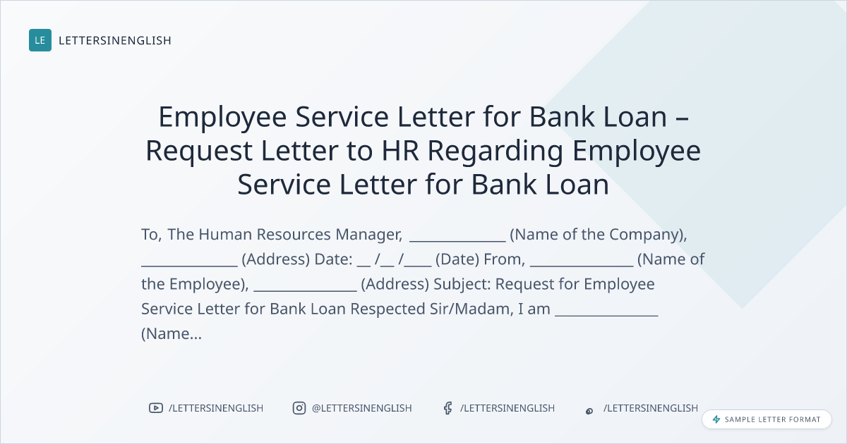 Employee Service Letter for Bank Loan – Request Letter to HR Regarding Employee Service Letter for Bank Loan