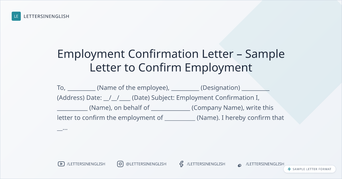 Employment Confirmation Letter – Sample Letter to Confirm Employment