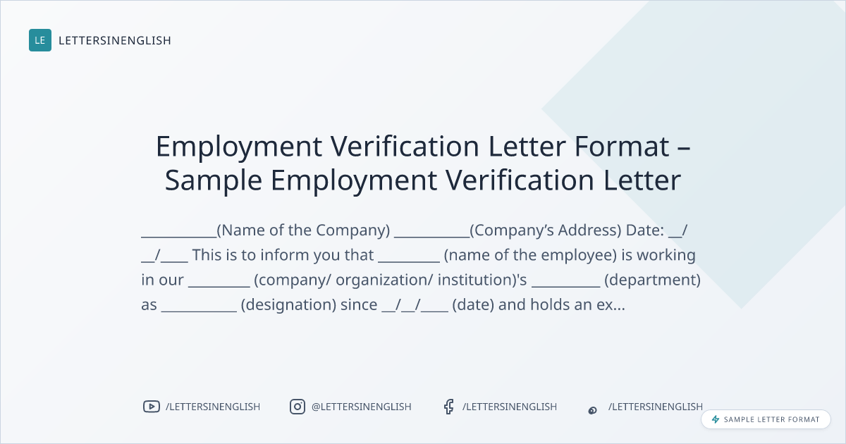 Employment Verification Letter Format – Sample Employment Verification Letter