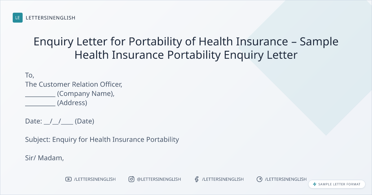 Sample Health Insurance Portability Enquiry Letter