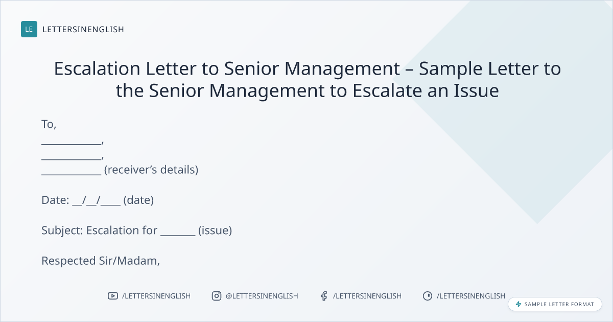 Escalation Letter to Senior Management – Sample Letter to the Senior Management to Escalate an Issue