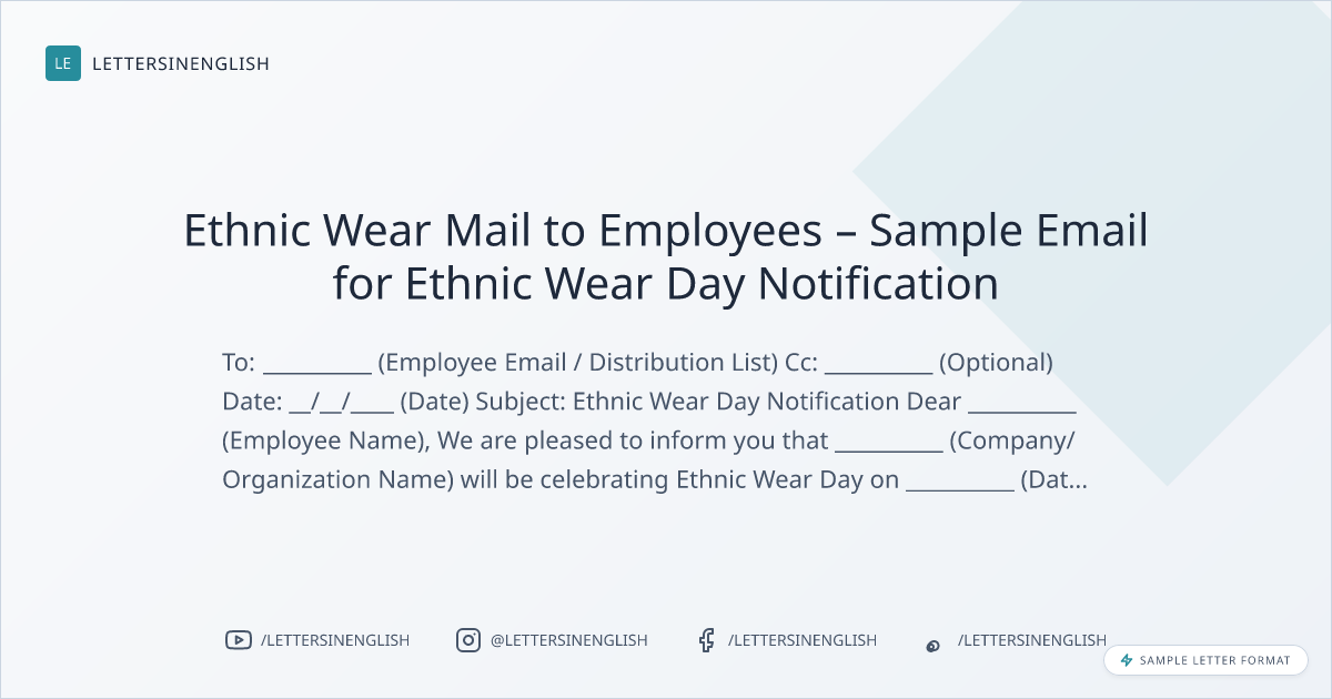 Ethnic Wear Day Announcement Mail – Sample Email for Ethnic Wear Day at Workplace