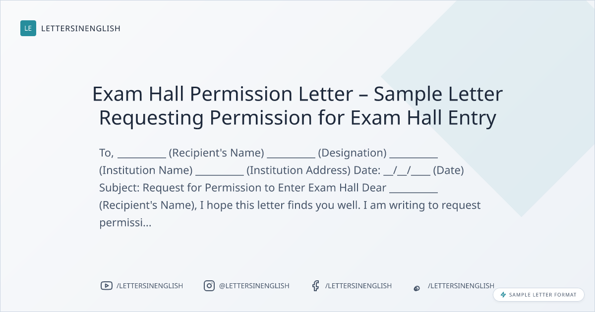 Exam Hall Permission Letter – Sample Letter Requesting Permission for Exam Hall Entry