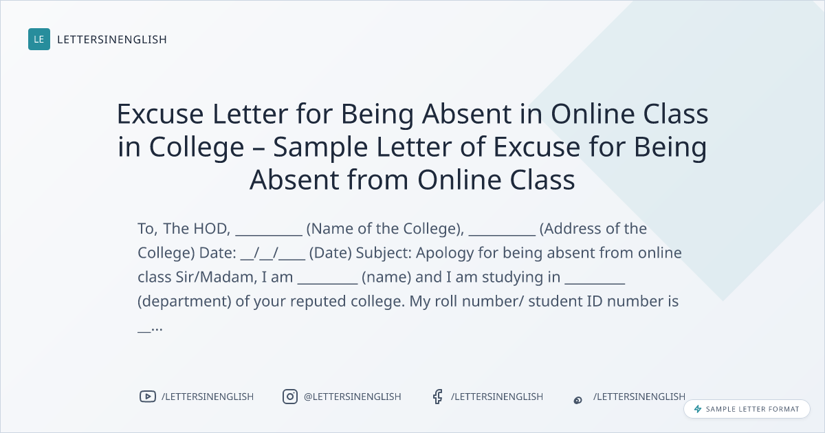 Excuse Letter for Being Absent in Online Class in College – Sample Letter of Excuse for Being Absent from Online Class