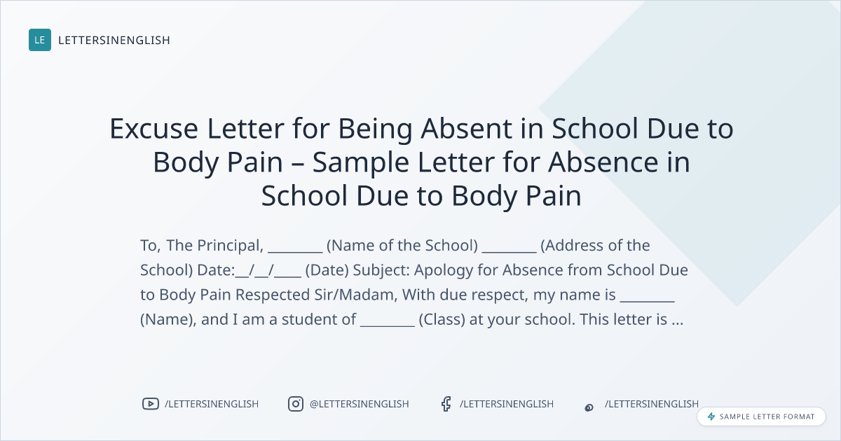 Excuse Letter for Being Absent in School Due to Body Pain – Sample Letter for Absence in School Due to Body Pain