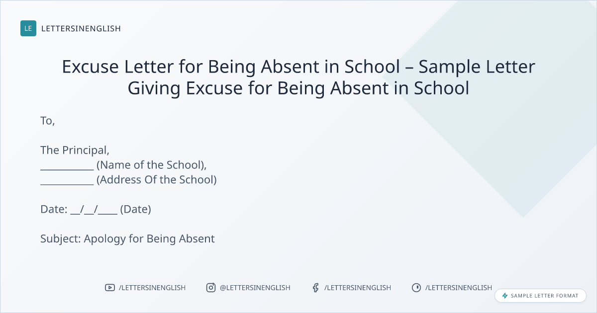 Excuse Letter for Being Absent in School – Sample Letter Giving Excuse for Being Absent in School