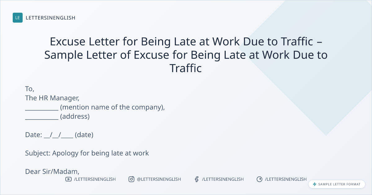 Excuse Letter for Being Late at Work Due to Traffic – Sample Letter of Excuse for Being Late at Work Due to Traffic