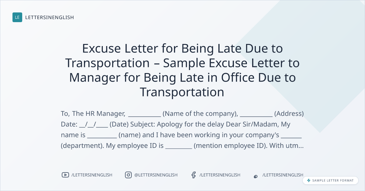 Excuse Letter for Being Late Due to Transportation – Sample Excuse Letter to Manager for Being Late in Office Due to Transportation
