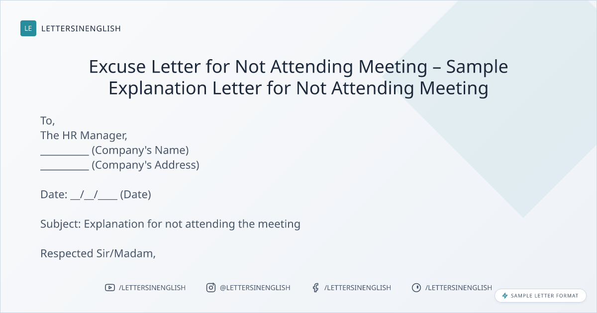 Excuse Letter for Not Attending Meeting – Sample Explanation Letter for Not Attending Meeting