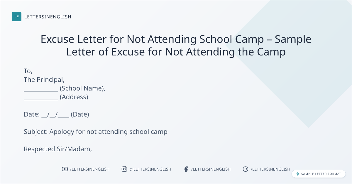 Excuse Letter for Not Attending School Camp – Sample Letter of Excuse for Not Attending the Camp