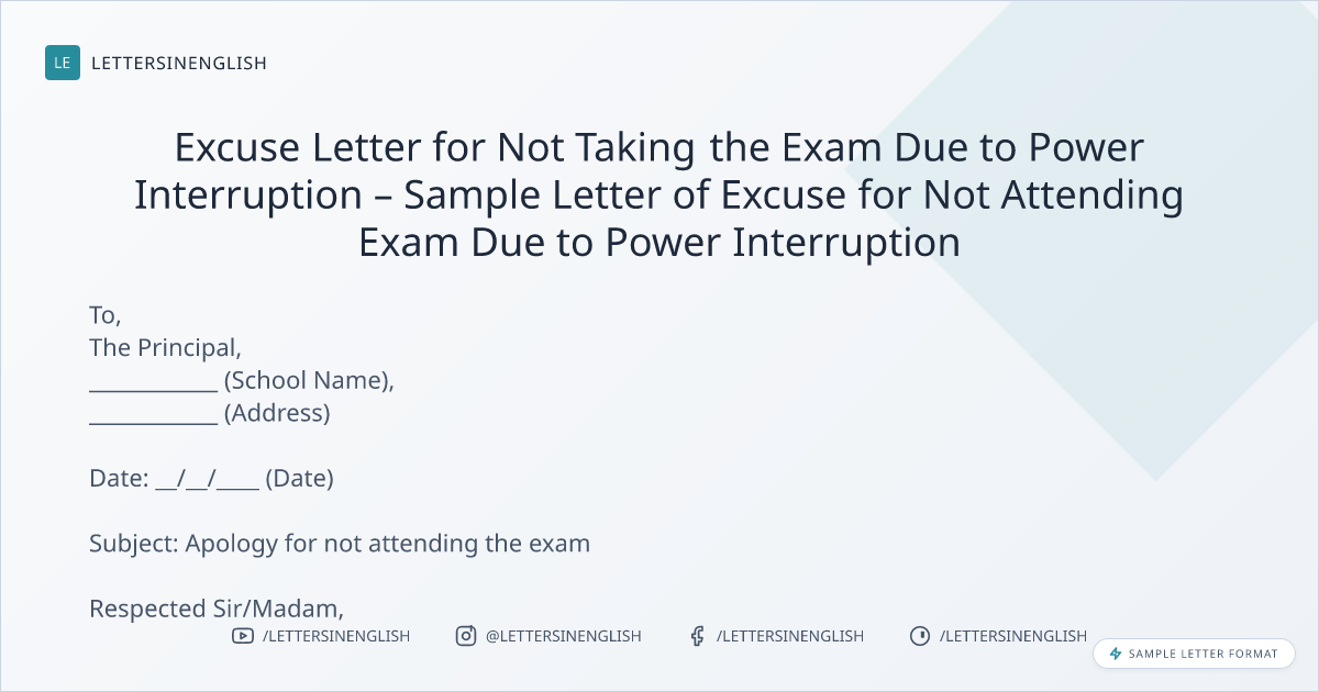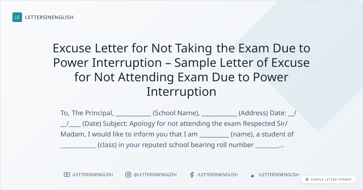 Excuse Letter for Not Taking the Exam Due to Power Interruption – Sample Letter of Excuse for Not Attending Exam Due to Power Interruption