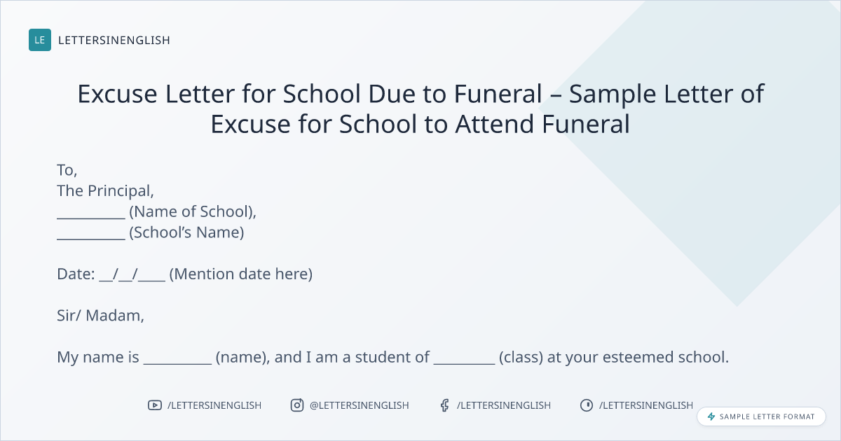 Excuse Letter for School Due to Funeral – Sample Letter of Excuse for School to Attend Funeral