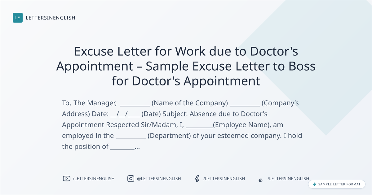 Excuse Letter for Work due to Doctor’s Appointment – Sample Excuse Letter to Boss for Doctor’s Appointment