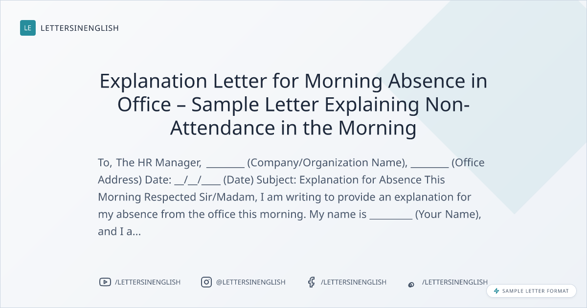 Explanation Letter for Morning Absence in Office – Sample Letter Explaining Non-Attendance in the Morning