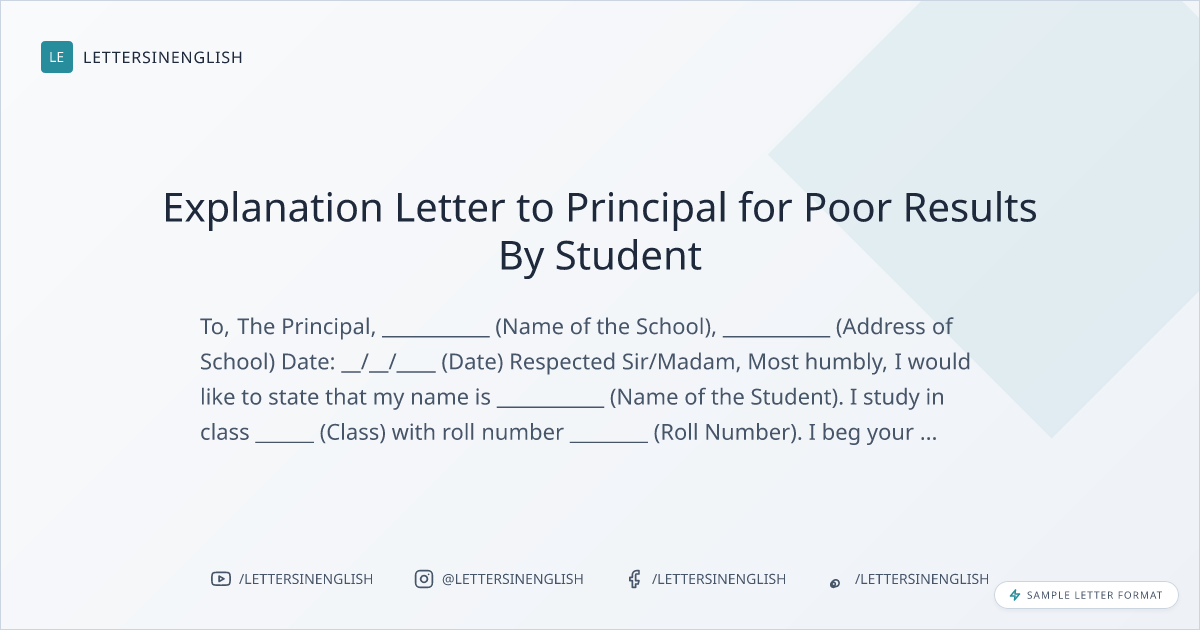 I beg to ask pardon for not showing up good results in ____________ (class/semester/unit test/weekly test /monthly test). The major reason being _______________ (mother/father/guardian got extremely sick/visit to hometown/mention your problem in detail). I understand the consequences of poor result in _________ (major semesters). But I can assure you that my reasons were genuine and unavoidable.