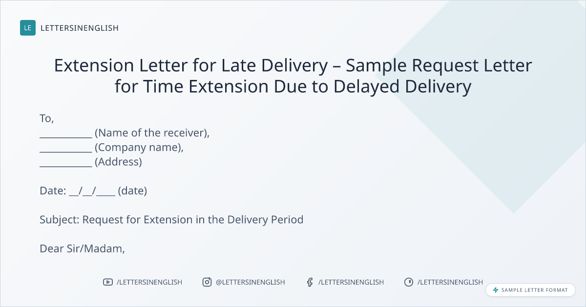 Extension Letter for Late Delivery – Sample Request Letter for Time Extension Due to Delayed Delivery