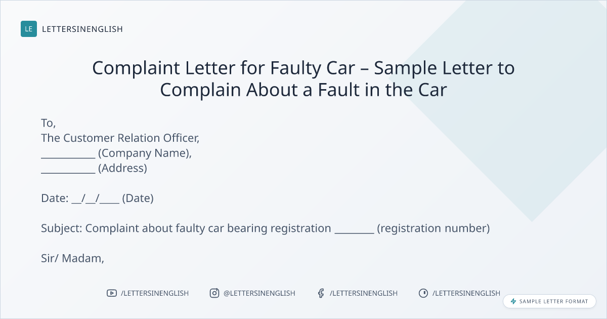 Complaint Letter for Faulty Car – Sample Letter to Complain About a Fault in the Car