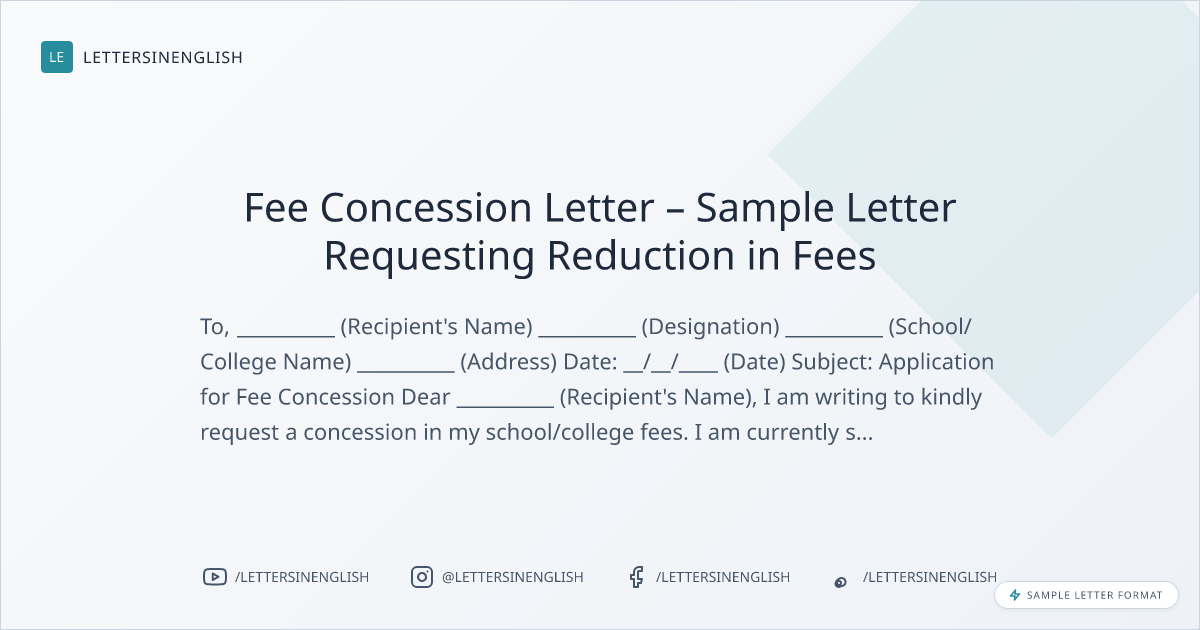 Fee Concession Letter – Sample Letter Requesting Reduction in Fees