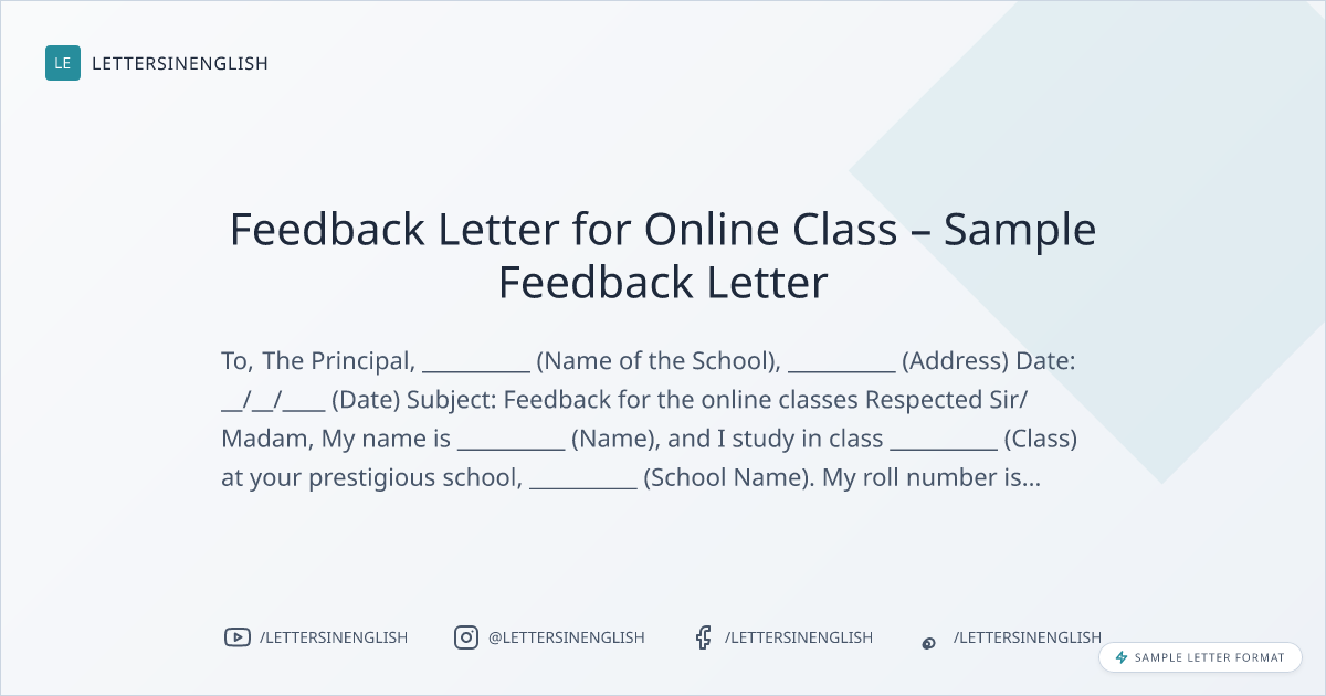 Feedback Letter for Online Class – Sample Feedback Letter