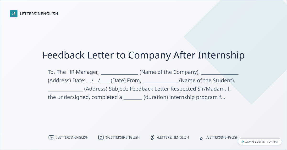 Feedback Letter to Company After Internship