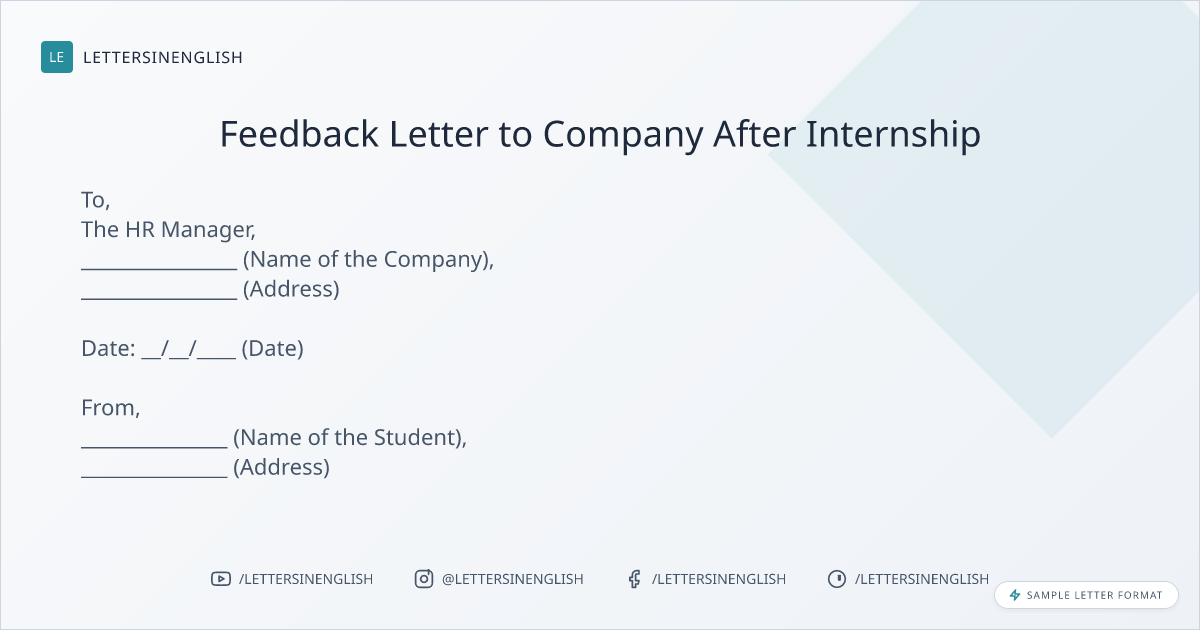 If you are looking for sample feedback letter format that you want to submit in company where you have completed internship / training. Fill Sample Feedback Letter to Company After Internship