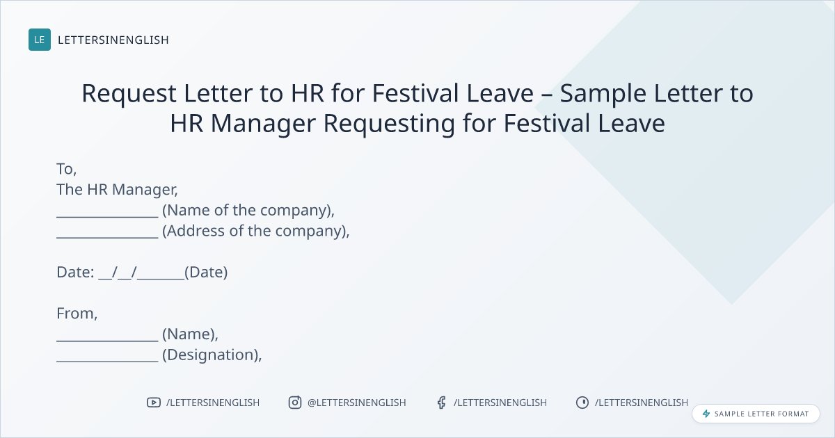 Request Letter to HR for Festival Leave – Sample Letter to HR Manager Requesting for Festival Leave