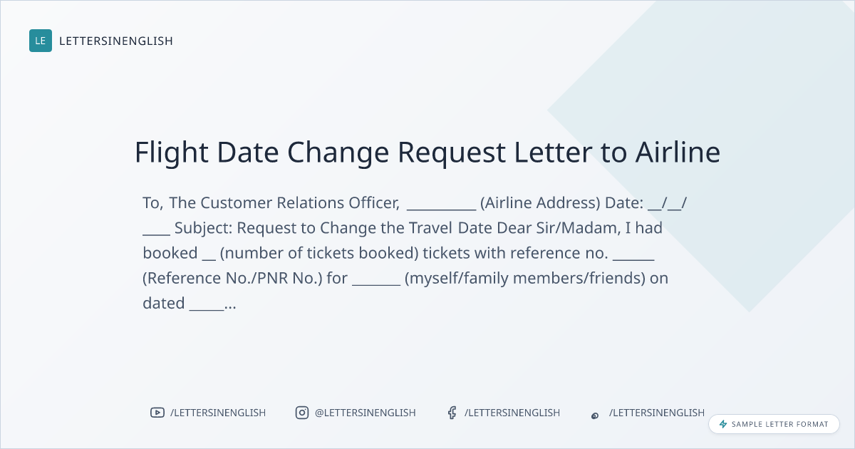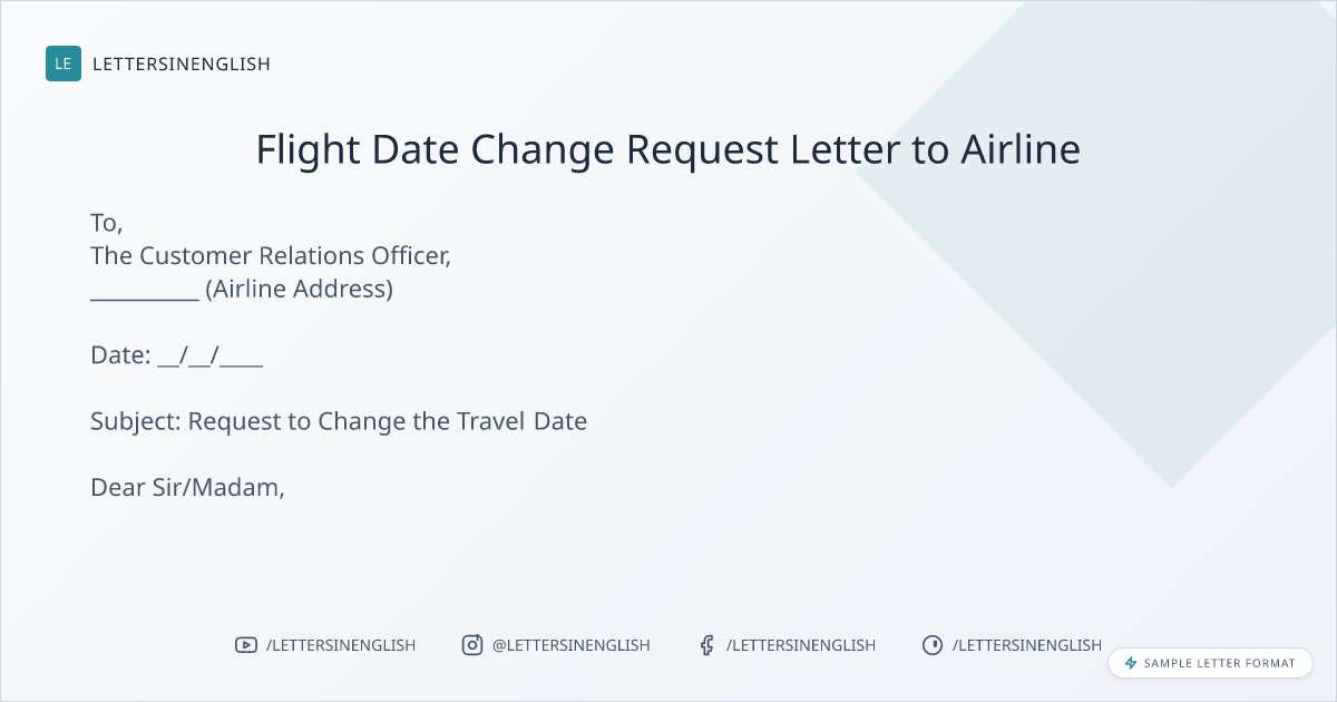 I humbly request you to kindly reschedule my the flight travel date and we are ready to pay _______ (full/partial/any other) amount as per airline policy. I am enclosing (duly filed flight change /amendment/reschedule form/ ID/Address proof/ any other supporting document) along with the application.