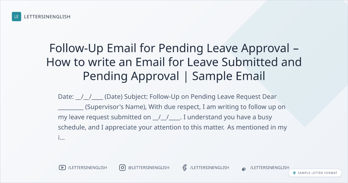 Follow-Up Email for Pending Leave Approval – How to write an Email for Leave Submitted and Pending Approval | Sample Email
