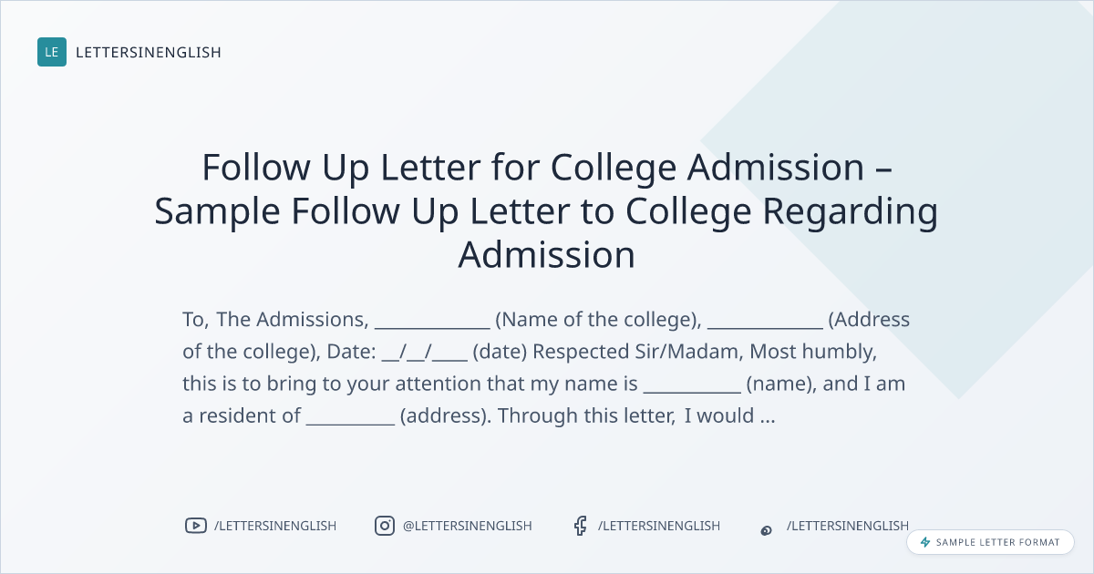 Follow Up Letter for College Admission – Sample Follow Up Letter to College Regarding Admission