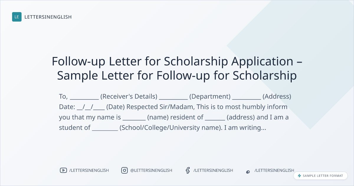 Follow-up Letter for Scholarship Application – Sample Letter for Follow-up for Scholarship