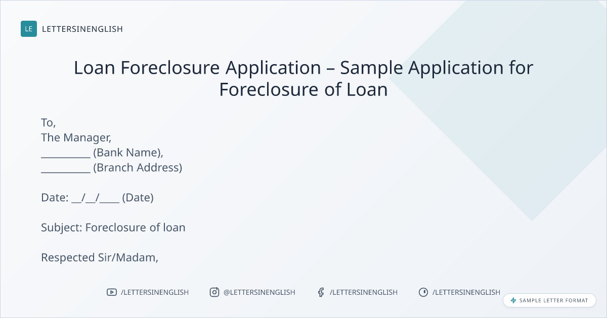 Loan Foreclosure Application – Sample Application for Foreclosure of Loan
