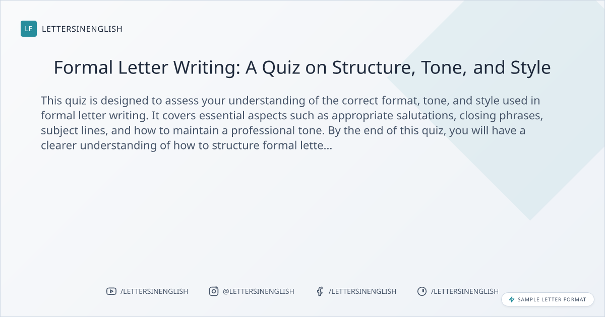 Formal Letter Writing: A Quiz on Structure, Tone, and Style