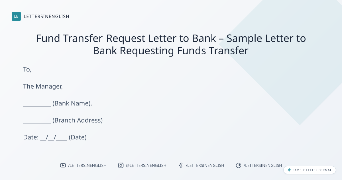 Fund Transfer Request Letter to Bank – Sample Letter to Bank Requesting Funds Transfer