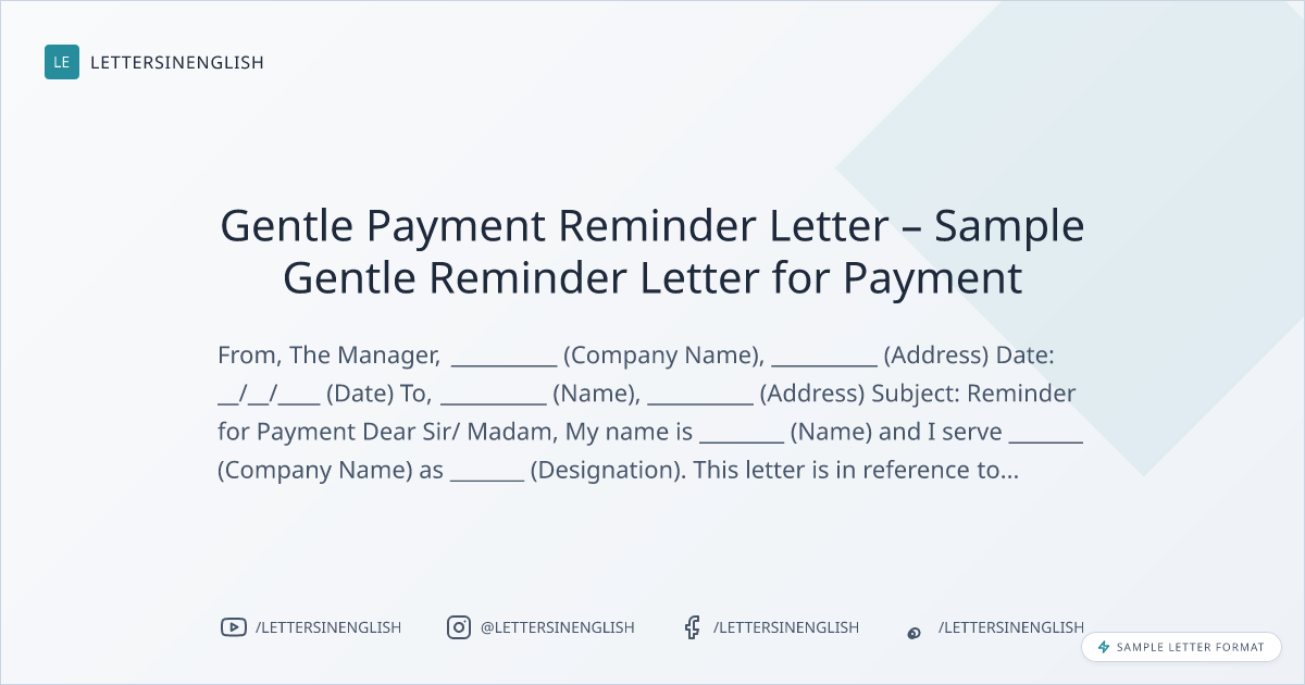 Gentle Payment Reminder Letter – Sample Gentle Reminder Letter for Payment